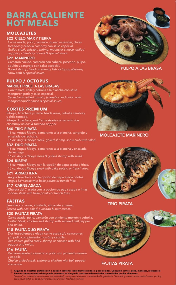- Highlighted Dishes: Molcajete, various seafood specials.